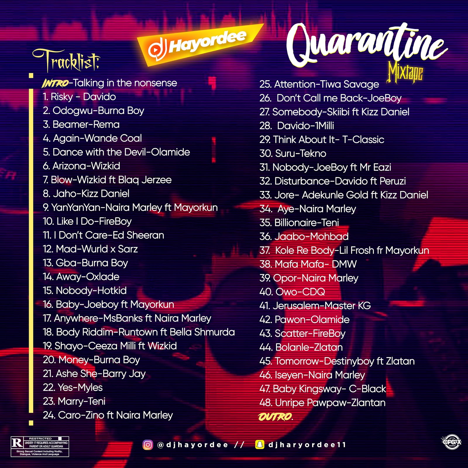 International Disc Jockey, DJ Hayordee releases a new mixtape titled “Quarantine Mix“. This new playlist “Quarantine Mix” comprises of both New and Old school hit songs. The party is keep everyone lively as we stay home in order to be Safe from the viral disease – Corona Virus.